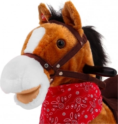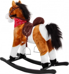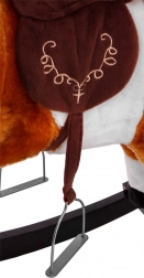 Roztomilý houpací koník ze soft plyše nadchne každé dítě od 3 let. Má stabilní dřevěné lišty, pohodlné sedlo se třmeny a uzdu. Na uších jsou senzory, které spouštějí zvuky řehtání a cvalu i kovbojskou písničku, zároveň se koníkovi hýbe tlamička a ocásek. Skvělá kombinace bezpečné zábavy a rozvoje motoriky.