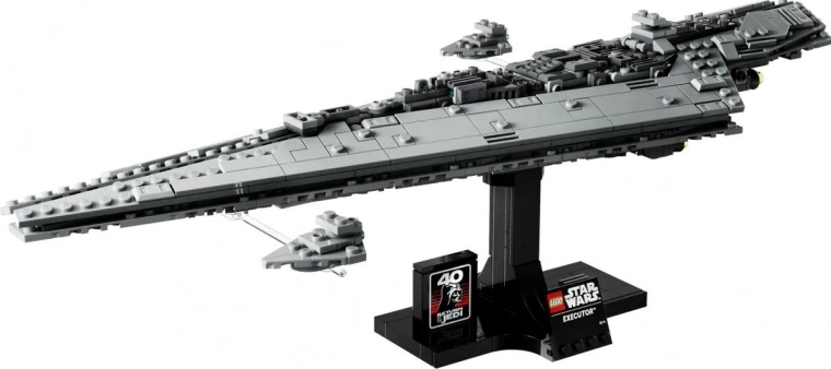 Elegantní stojan s plaketkou a speciální dlaždicí k 40. výročí zvýrazní štíhlé linie Executor Super Star Destroyeru a promění model v dominantní dekoraci.
