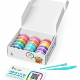 Bohatá škála zářivých odstínů pro modelování postaviček i detailů. Hmota je lehká, nešpiní a po zaschnutí drží tvar.