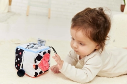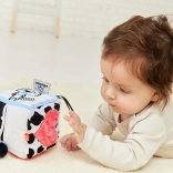 Tato měkoučká senzorická kostka je navržena pro nejmenší průzkumníky. Každá ze šesti stran přináší jiný smyslový zážitek – od kontrastních černobílých vzorů s barevnými akcenty až po rozmanité textilie a povrchy, které lákají k dotyku a objevování. Roztomilé motivy krávy a tygra podněcují zvědavost a učí dítě vnímat tvary a emoce.