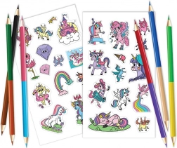 Vytvořte kouzelný svět s omalovánkou na cesty Jednorožci, která je plná aktivit a zábavy pro všechny věkové kategorie. Toto praktické cestovní balení obsahuje: