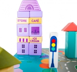 Postavte kompletní městskou scénu na přehledné puzzle podložce 54 × 42 cm. Děti mohou plánovat ulice, umisťovat budovy a objevovat fungování města. Sada rozvíjí koordinaci ruka–oko, logické myšlení a podporuje společnou hru sourozenců či kamarádů.