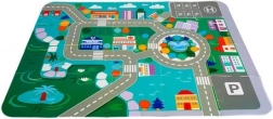 Puzzle podložka vytváří ucelený plán města s cestami a plochami pro budovy, takže se děti snadno orientují a hra je přehledná a pohlcující.