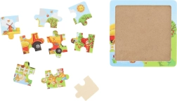 Dřevěné puzzle Sklizeň s 9 dílky je skvělou volbou pro první skládání. Díky kvalitní dřevěné podložce a pevným dílkům se s nimi dětem dobře manipuluje a každý úspěch posiluje jejich sebevědomí. Vyfrézovaný okraj na podkladové desce pomáhá nasměrovat dílky na správné místo.