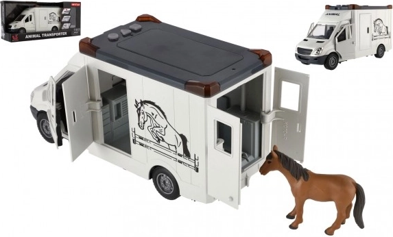 Tento přepravník zvířat je perfektní pro všechny malé milovníky koní a zvířat. S reálnými detaily jako otevíratelnými dveřmi a funkcí setrvačníku nabízí autentický herní zážitek. Vyroben z odolného plastu, je připraven čelit jakémukoliv hernímu náročnému prostředí.