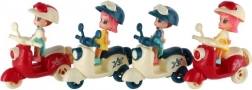 Panenka a skútr jsou dostupné ve čtyřech různých barevných kombinacích, takže si každé dítě najde svoji oblíbenou barvu.
