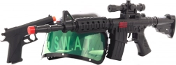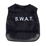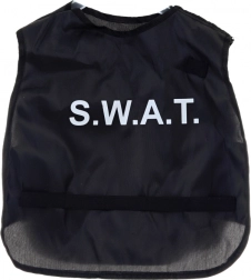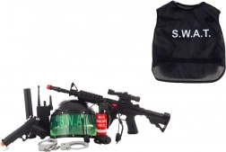 Černá vesta s nápisem S.W.A.T., helma s hledím a bohaté příslušenství vytváří autentický vzhled pro hraní rolí.
