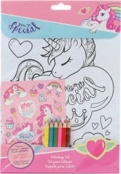 Kreativní sada s motivem jednorožců obsahuje 8 listů omalovánek, 6 barevných pastelek a 1 arch samolepek. Skvělá zábava pro děti od 3 let doma i na cestách. Kompaktní rozměry 20 × 28,5 × 0,5 cm usnadňují přenášení.