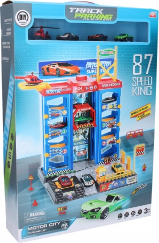 Tato detailně zpracovaná parkovací stanice přináší dětem realistickou hru na městský provoz. Díky robustním kovovým vozidlům a vrtulníku si užijí spoustu akce od přistání na heliportu až po tankování u čerpací stanice. Mechanická páčka u parkovacích míst usnadňuje plynulý výjezd aut z garáže.