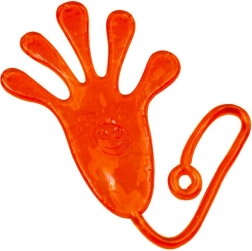 Zábavná lepivá ruka v oranžové barvě nadchne děti svou pružností a efektem přilnavosti. Dá se házet, lepit na hladké povrchy, mačkat a natahovat, přičemž se vrací do původního tvaru. Vypadá jako mokrá, ale ruce po hře zůstávají zcela suché. Vyrobena z bezpečných a elastických materiálů, ideální na doma i ven. Vhodné pro děti od 3 let, s certifikací CE a normou EN71.