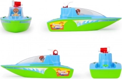 Odolná plastová konstrukce, plovoucí trup a živé barvy dělají z lodi ideální hračku do vody i na suchou zem.