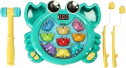 Na výběr jsou dvě hry: bouchání krabů kladívkem a lovení pomocí prutu. Obě aktivity podporují rozvoj manuálních dovedností, jemné motoriky a koordinace ruky a oka, což je klíčové v raných letech života dítěte. Díky tomu děti zlepšují své pohybové schopnosti a přesnost.