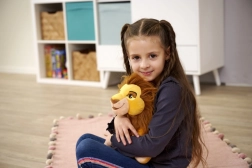 Vyšívané oči, nos i úsměv bez tvrdých dílů dělají z Mufasy ideálního společníka již od raného věku.