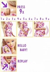 - Rostoucí bříško na stisk – po 9 stiscích se narodí miminko, proces lze resetovat a opakovat.