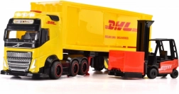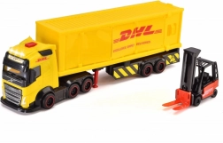Tento detailně zpracovaný model nákladního vozu VOLVO v barvách DHL přináší dětem spoustu možností pro kreativní hraní. Díky přiloženému vysokozdvižnému vozíku a krabicím lze snadno inscenovat nakládku, přepravu i vykládku – přesně jako v reálné logistice.