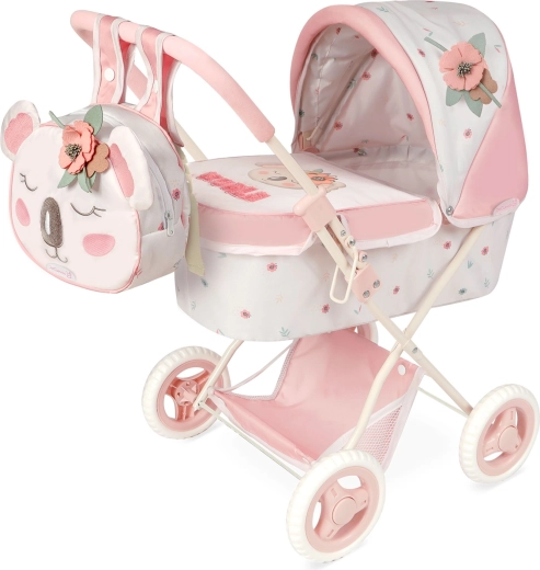 Součástí je ozdobný batůžek, měkká matrace a kryt korbičky. Jemný květinový motiv a spící koala potěší každé dítě.