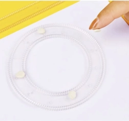 Protiskluzová TPR hmota fixuje prstenec na papíře, brání nechtěnému posunu a zajišťuje hladké, přesné křivky bez rozmazání.