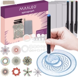 Sada spirografu MAELEO spojuje zábavu, umění a vzdělávání. Různě veliká ozubená kolečka, prstence a geometrické šablony umožňují kreslit hypotrochoidy a epitrochoidy – fascinující opakující se křivky a mandaly. Transparentní prvky zpřehledňují pozici pera, takže i začátečníci dosáhnou přesných a harmonických vzorů.