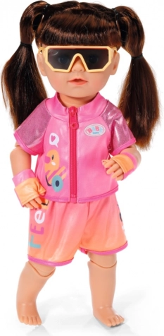 Tato cyklistická souprava pro panenky BABY born (43 cm) promění každou projížďku na kole nebo tříkolce v krásné dobrodružství. Lehký top na zip s potiskem a ladící kraťasy se širokým elastickým pasem zaručují pohodlí při každém pohybu. Rukavičky a velké sluneční brýle dotvářejí sportovní vzhled a chrání oči panenky při „slunečné“ jízdě.