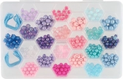 Plastová krabička s šestihranným designem víka usnadňuje ukládání a organizaci korálků podle barev.