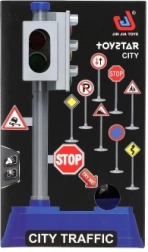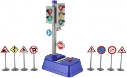 Kromě semaforu obsahuje sada i několik dopravních značek, které učí děti rozpoznávat a chápat dopravní situace.