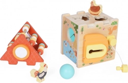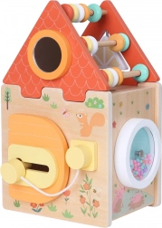 Tato hračka je ideální pro rozvoj dětí, protože každá strana domečku skrývá nové dobrodružství. Ať už jde o vkládání, posouvání nebo zámečky. Kostka obsahuje také počítadlo, které slouží jako střecha domečku.