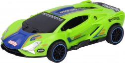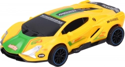 Driftující závodní autíčko na setrvačník s rozměry 15,5 × 8 × 4 cm. Stačí ho rozjet a díky kolmo umístěnému kolečku uprostřed podvozku samo driftuje. K dispozici 4 barvy – modrá, zelená, oranžová, žlutá; zábava bez baterií.