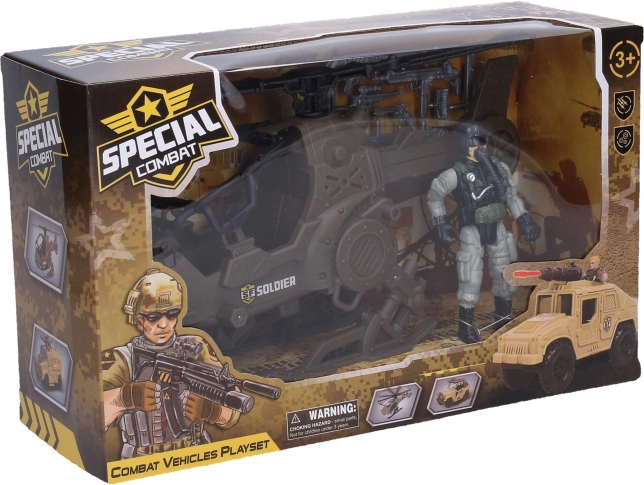Vojenský vrtulník s figurkou pilota. Délka 23 cm, pilot 9,5 cm. Odolná hračka pro akční a kreativní hraní. Skvělý dárek pro malé dobrodruhy.