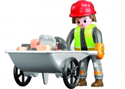 - Obsahuje figurku dělníka, kolečko, náklad a nářadí