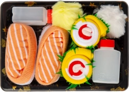 Originální dárkový balíček ve stylu sushi, který skrývá 2 páry pohodlných ponožek v univerzální velikosti, 2 gumičky do vlasů a 3 plastové lahvičky jako stylové doplňky. Skvělé jako vtipný dárek, který zaujme realistickým vzhledem „sushi“ a potěší praktickým využitím.