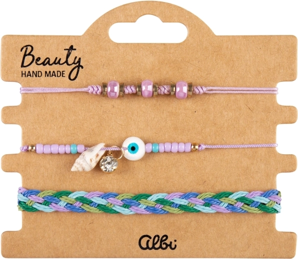 Objevte elegantní sadu 3 náramků s jemným motivem fialové mušle. Díky nastavitelné délce až 30 cm si každý náramek snadno upravíte podle svého zápěstí. Kombinujte je dohromady nebo je noste samostatně pro různé styly.