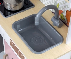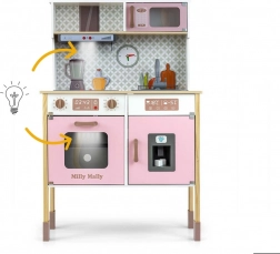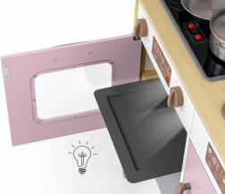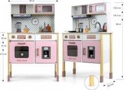 Objevte kouzlo dětského vaření s dřevěnou kuchyňkou MILLY MALLY BJORN v růžových a pastelových tónech. Nabízí troubu se světlem, elektrickou varnou desku se zvuky a podsvícením, dřez s kohoutkem, mikrovlnku a lednici s výrobníkem ledu. Bohatá sada kovového nádobí a dřevěných příborů podporuje kreativní hru na role, rozvoj jemné motoriky a samostatnosti. Výšku lze přizpůsobit díky nastavitelným nožkám.