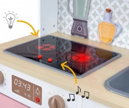 Varná deska se zvukem vaření a podsvícením, trouba se světlem a klikající ovladače přinášejí dětem opravdový kuchařský zážitek.