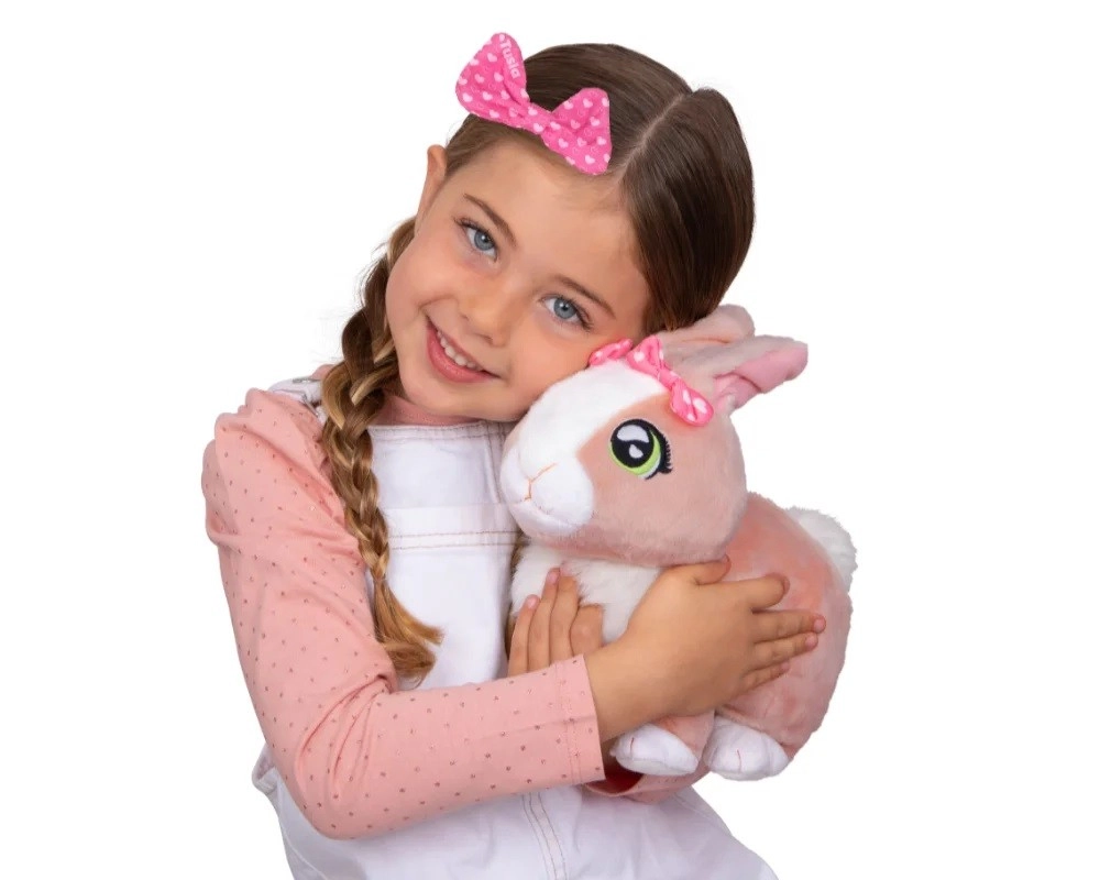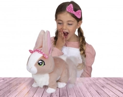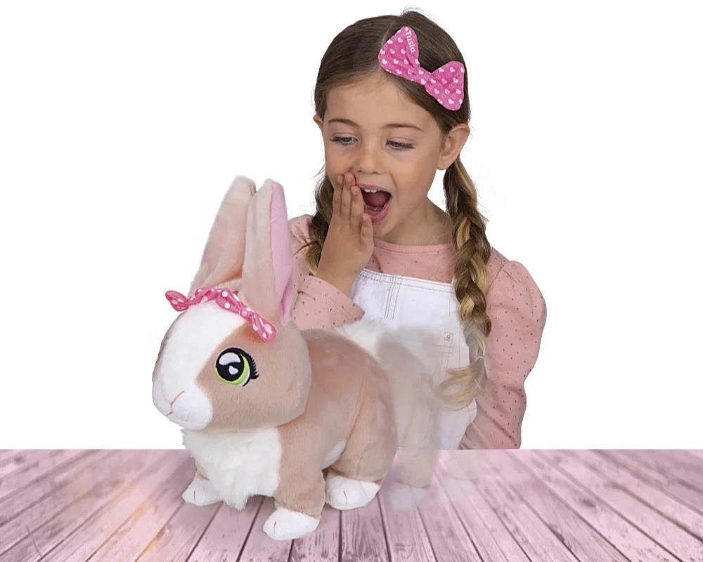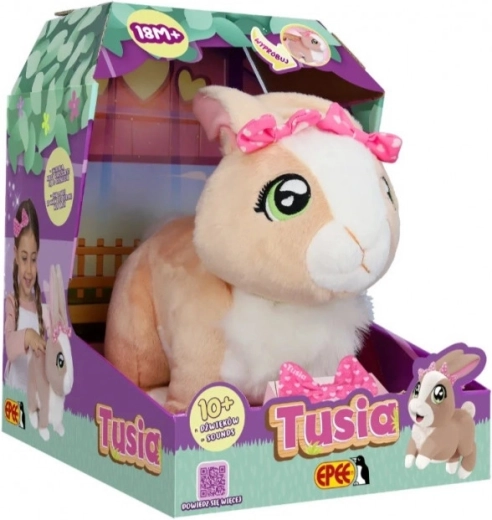 Králíček Tusia okamžitě zaujme měkoučkým béžovým kožíškem, velkými zelenými očima a něžnými detaily včetně růžové mašličky. Díky interaktivním funkcím přinese dětem spoustu zábavy i uklidňujícího mazlení. Při pohlazení se radostně rozskáče, pohybuje oušky a ozve se milými zvuky, které podpoří fantazii i emocionální rozvoj dítěte.