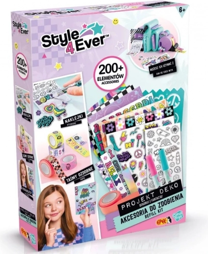 Sada Projekt Deko přináší jednoduchý způsob, jak si ozdobit a přizpůsobit školní pomůcky, dárky či drobné doplňky. V balení najdete notýsek a různé kreativní komponenty, které umožňují tvořit barevné motivy a jedinečné designy, jež můžete umístit téměř kamkoli.