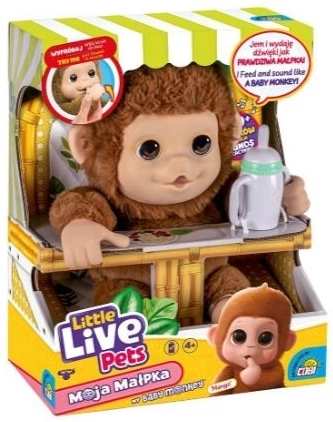 Seznamte se s roztomilou opičkou Mango z kolekce LITTLE LIVE PETS – vaším novým exotickým kamarádem. Reaguje na dotek a pohyb, vydává více než 50 zvuků a reakcí, umí se houpat hlavou dolů a díky pohyblivým ústům působí jako živá. Balení obsahuje lahvičku na krmení a adopční certifikát. Vhodné od 4 let, baterie jsou součástí balení.