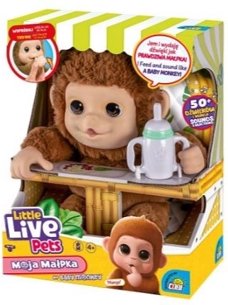 Nakrmte opičku přiloženou lahvičkou a sledujte, jak její pohyblivá ústa ožívají. Skvělá volba pro role-play a pečovatelské hry.