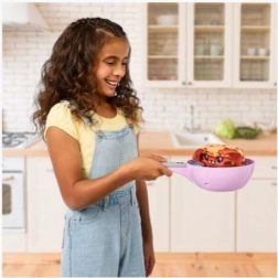Stiskněte tlačítko na rukojeti a otočte pánví – na pánvi se objeví voňavá plyšová palačinka, která pobaví při každém pokusu.