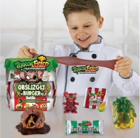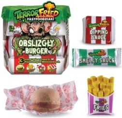 Sada figurek Terror Fried – Slizký burger přináší porci šílené zábavy pro děti, které milují překvapení a smích. Otevřete krabičku a odhalte musující burger, chrupavé „hranolky“ i dva druhy slizu – každý krok odhalí novou vrstvu nechutně skvělé zábavy.