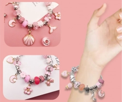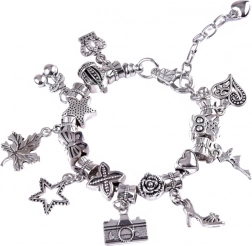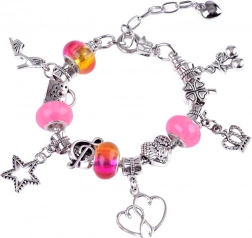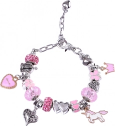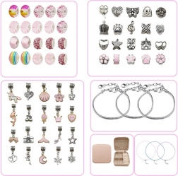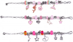 Sada obsahuje vše potřebné pro tvorbu krásných náramků a náhrdelníků: různé korálky, přívěsky a provázky.