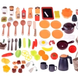 • 88dílná sada příslušenství včetně hrnců, pánve, náčiní, nádobí, potravin a nápojů