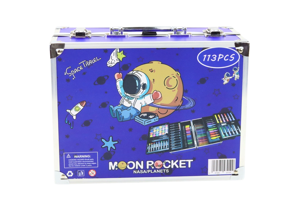 Tato všestranná výtvarná sada podporuje rozvoj jemné motoriky, kreativity a experimentování s různými technikami. Stylový kufřík s motivem vesmíru je nejen krásný, ale i vysoce praktický – dítě si jej může vzít na cesty, do školy i na kroužek.