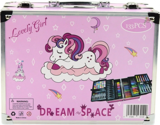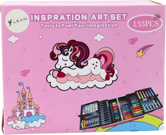 Kompletní výtvarná sada s motivem jednorožce v praktickém rozkládacím kufříku obsahuje až 133 dílů pro malování a kreslení. Najdete v ní akrylové popisovače, oboustranné fixy, pastely, tužkové a pastelové pastelky, vodové barvy, štětce, gumu, ořezávátko i omalovánky. Ideální pro děti od 3 let, podporuje kreativitu a jemnou motoriku a snadno se přenáší díky kompaktním rozměrům a uchu.