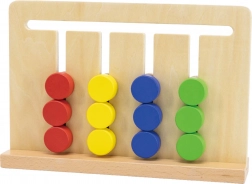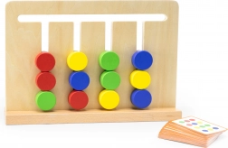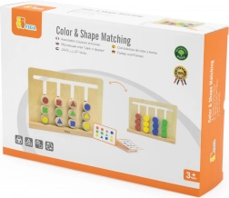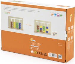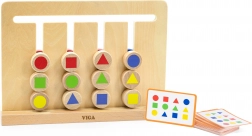 Dřevěná logická hra od VIGA učí děti od 3 let rozpoznávat barvy a tvary, plánovat kroky a soustředit se. Na 4 drahách posouvají děti 12 oboustranných kostiček podle 16 oboustranných karet. Dva stupně obtížnosti (barvy → tvary) zajišťují dlouhou a smysluplnou zábavu v duchu Montessori.