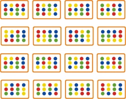 - 12 oboustranných kostiček – barvy z jedné strany, tvary z druhé