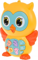 Roztomilá žlutá sovička je ideální první interaktivní hračka pro rozvoj smyslů a motoriky nejmenších dětí. Díky světýlkům na křídlech, barevným tlačítkům a různým zvukům si děti procvičí zrak, sluch i jemnou motoriku. Ovládání je jednoduché – režimy přepnete tlačítkem ve tvaru srdíčka, samozřejmostí je regulace hlasitosti.