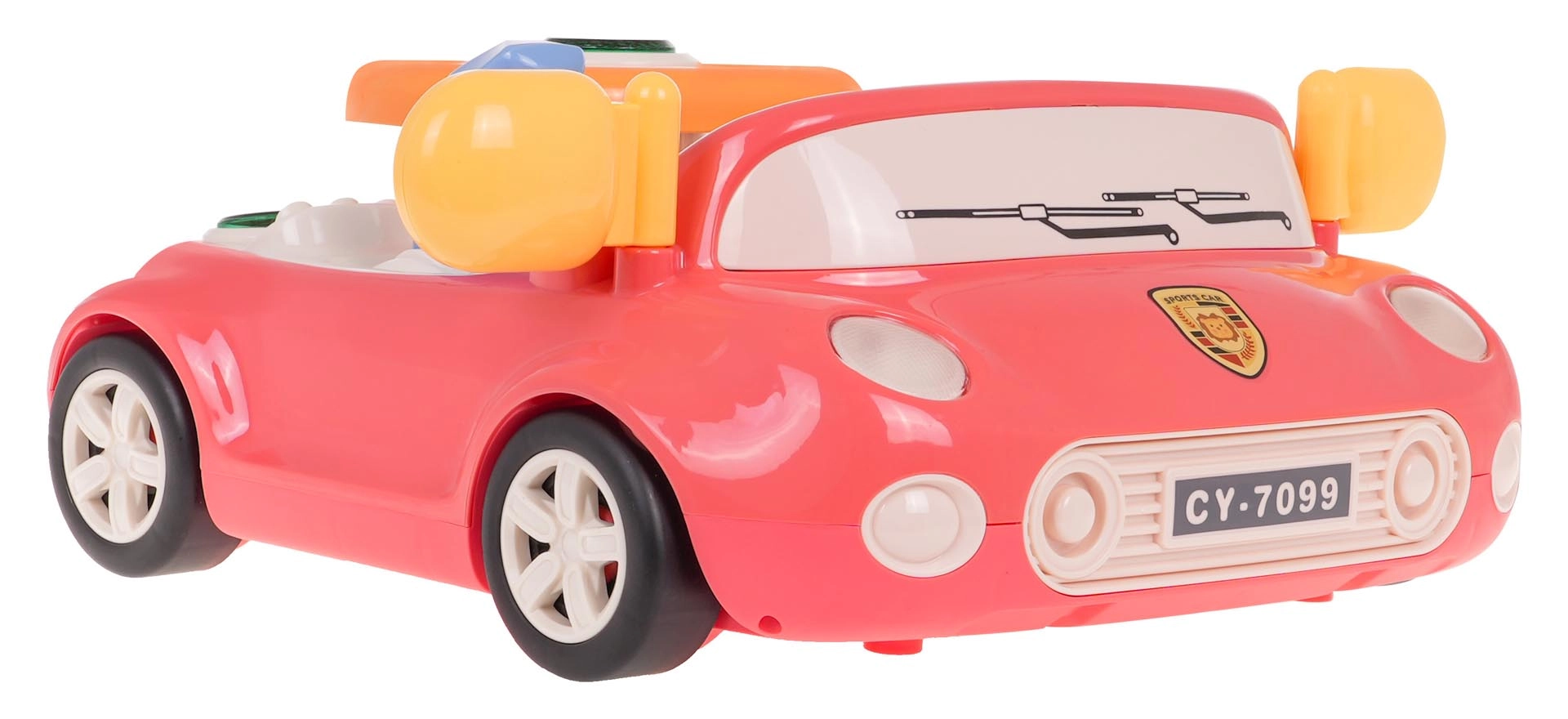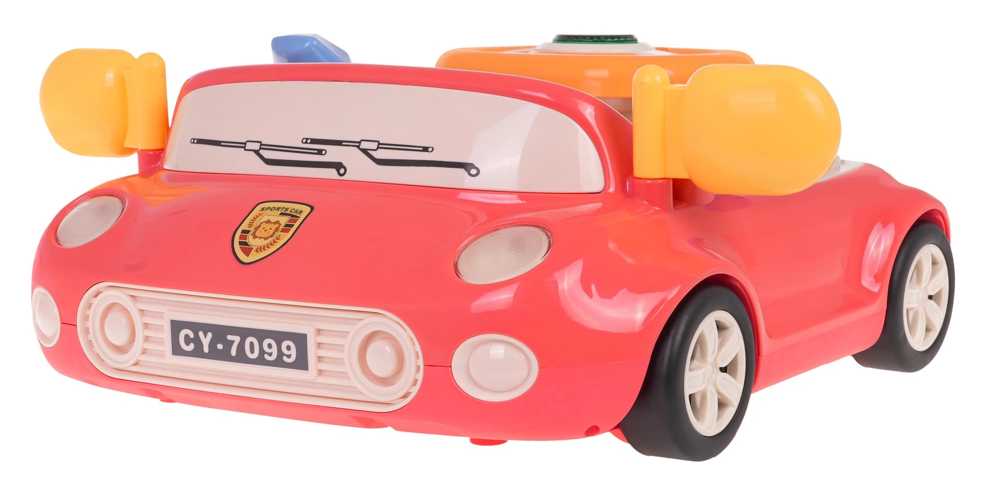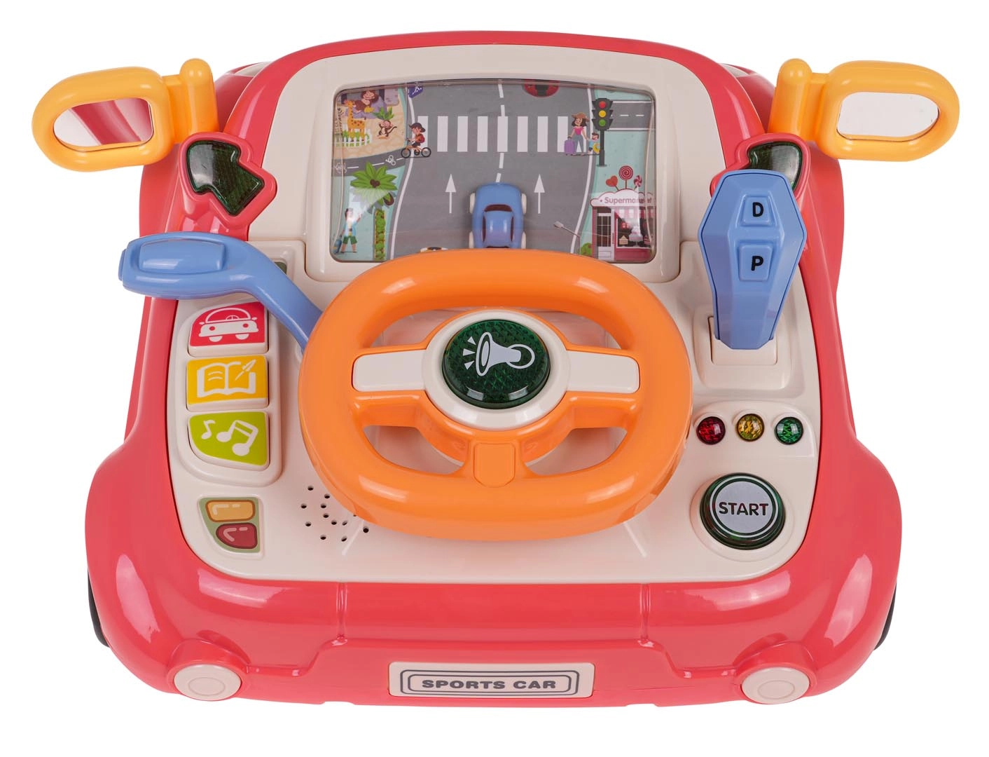 Zábavná interaktivní hračka ve tvaru autíčka pro děti od 3 let. Nabízí světelné a zvukové efekty, otáčecí volant s podsvíceným klaksonem, řadicí páku, směrovky a obrazovku s pohybující se silnicí a autíčkem. Pevné provedení z kvalitního plastu, bez ostrých hran, se čtyřmi přísavkami pro stabilitu a výuku dopravních pravidel formou hry.