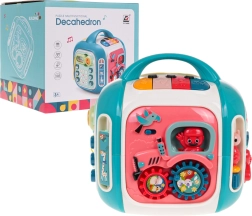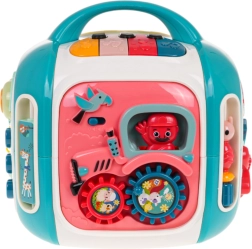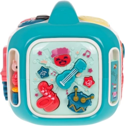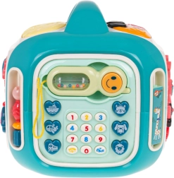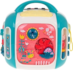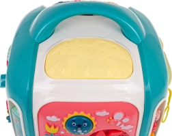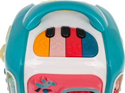 Interaktivní kostka je navržena pro zábavu i učení. Děti objevují barvy, tvary, názvy zvířat a dopravních prostředků, trénují prstíky na otočných prvcích a objevují různé melodie či zvuky. Horní panel s pianinkem nabízí 3 režimy a citlivé klávesy pro snadné hraní.