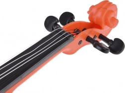 Oranžové tělo s černým hmatníkem a struníkem vypadá jako skutečné housle – motivuje děti ke hře a učení.