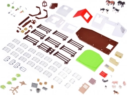Set zahrnuje plastové figurky zvířat jako jsou psi, koně, prasátka, ovce a krávy, které jsou vyrobené s důrazem na detaily. Nechybí ani postavy farmáře a hospodyně, které obohacují hru o každodenní farmářské povinnosti. Součástí setu je také traktor s přívěsem, zahradní nářadí a dekorativní samolepky pro vlastní personalizaci farmy.